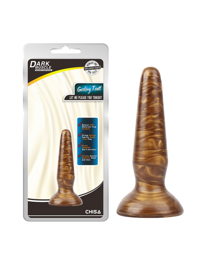 Przedstawiamy złotą kolekcję od Dark Muscle! 100% bezpieczne dla ciała dildo/wtyczki analne i dilda wykonane z naturalnego PVC. Miękkie i realistyczne w dotyku, wyposażone w mocną przyssawkę.To, co wyróżnia tę kolekcję spośród wszystkich innych, to niesamowity realistyczny efekt złota, który błyszczy i mieni się, gdy światło odbija się od tej imponującej wtyczki dildo.