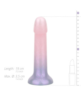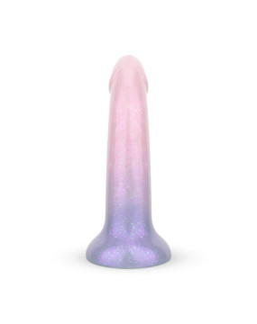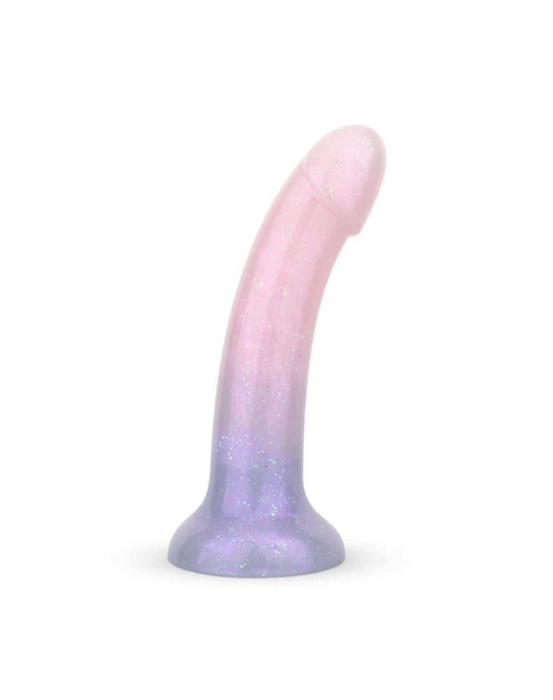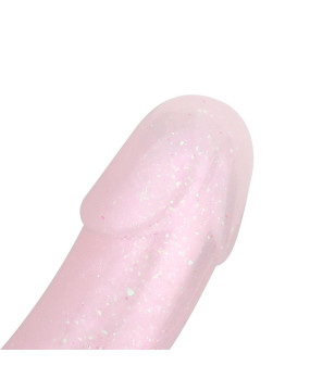 Żelowe dildo, zaprojektwane w pastelowych kolorach z uroczymi brokatowymi detalami, jest atrakcyjne wizualnie i stanowi wyjątkowy dodatek do każdej kolekcji zabawek! Poza swoim wyglądem oferuje satysfakcjonujące doznania i płynne wprowadzanie dzięki miękkiemu materiałowi. Wzmocnij swoje doznania ulubionym lubrykantem na bazie wody i ciesz się przygodą!