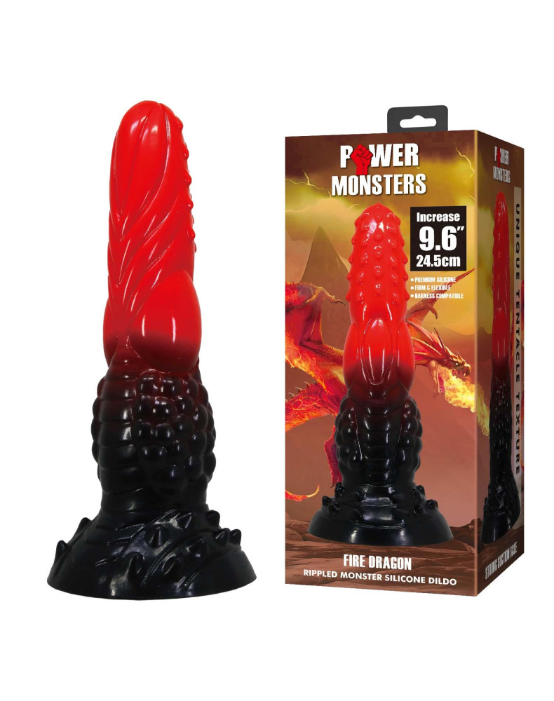 Power Monsters Fire Dragon – 24.5 cm Rippled Monster Silicone Dildo