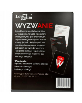 Jedno jest pewna gra WYZWANIE to coś więcej niż wieczorna zabawa. To stałe podniecenie, ciągła namiętność kuszenie i doskonała gra wstępna, dzięki której seks nabierze nowego wymiaru.