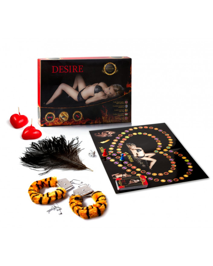 DESIRE - to erotyczna gra planszowa oparta o proste zasady, pozwalające skupić się na odczuwanej przyjemności. Rozgrywka składa się z dwóch etapów: Pierwszy to wprowadzenie do rozgrywki oparte o grę w karty, podczas którego gracze pozbywają się części ubrań.