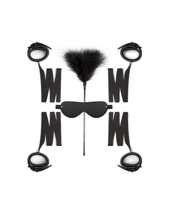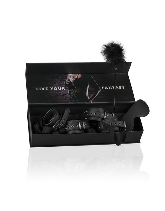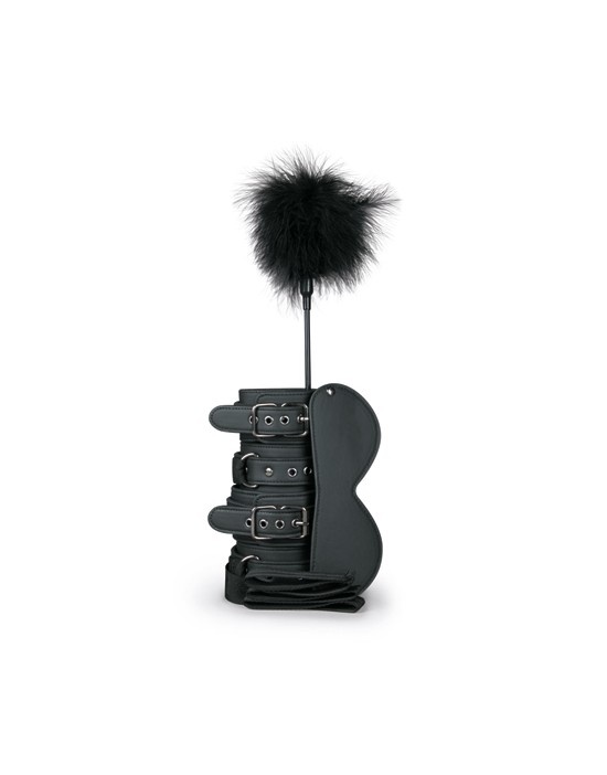 Czy jesteś zainteresowany niewolą, ale nie wiesz od czego zacząć? Następny zestaw fantazji dla początkujących niewolników jest właściwym wyborem dla Ciebie! Wprowadza cię w świat niewoli i pozwala ci wykorzystać wyobraźnię, ponieważ ten zestaw zabawek można wykorzystać w dowolny sposób. Zestaw składa się z kajdanek - mankiety do kostek, maska na oczy i podrażniacz. Cztery mankiety są połączone ze sobą, więc możesz je przypiąć do słupków łóżkowych, krzeseł, uprzęży itp. Możliwości są nieograniczone! Maska wzmacnia pozostałe zmysły, zapewniając ekscytujące wrażenia. Ze względu na elastyczny pasek zawsze pasuje idealnie. Użyj piórka, aby drażnić partnera i stymulować zakończenia nerwowe. Sprawia to, że skóra staje się jeszcze bardziej wrażliwa i dodaje dodatkowy wymiar do twojej niewoli.
