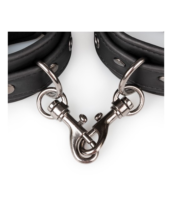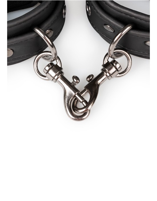 Zwiąż ręce swojego podwładnego lub przywiąż je do łóżka, aby uzyskać ekscytujące doświadczenie niewoli! Mankiety można regulować w zakresie od 11 do 28 cm, dzięki czemu zawsze idealnie pasują. Mankiety są przymocowane do siebie metalowym łańcuchem, ale klipsy umożliwiają również ich oddzielenie i używanie w połączeniu z innymi zabawkami. Mankiety wykonane są ze sztucznej skóry, pokrytej miękką pianką, aksamitne w dotyku, dzięki czemu są wygodne w noszeniu.