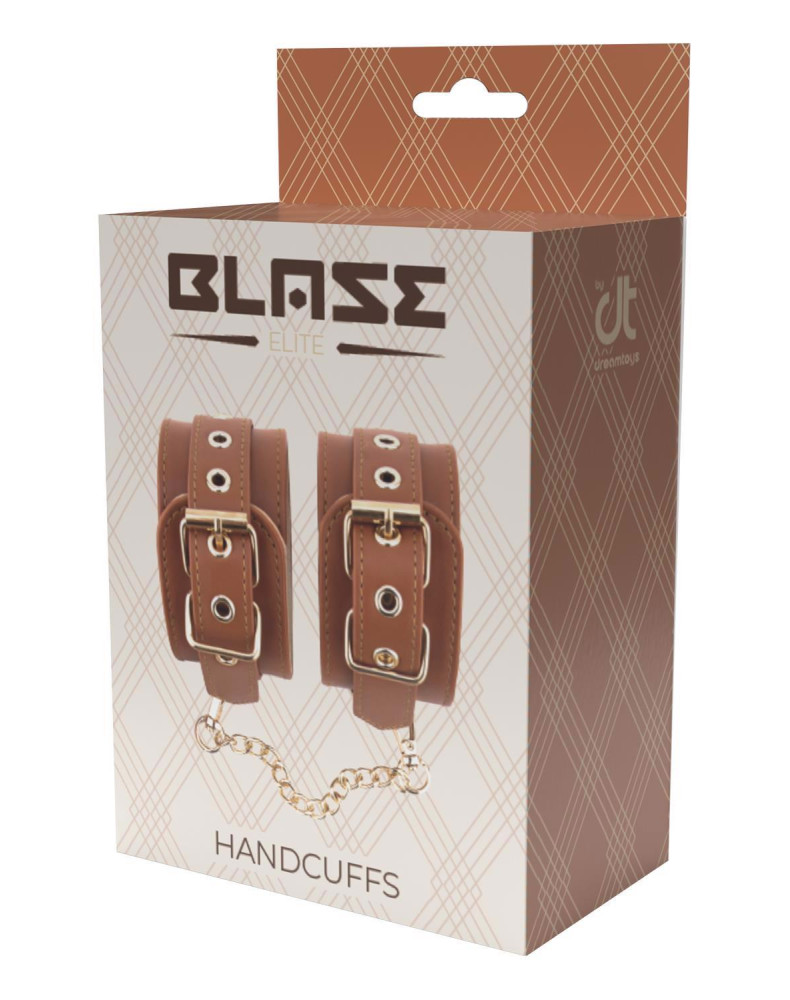 The Blaze Elite handcuffs have nickel free metal details that complete the stylish look. Experience the perfect fit with these fully adjustable wrist cuffs. The buckles allow you to customize the size to fit any wrist, ensuring a snug and secure feel during play. The metal chain serves as a functional and visually appealing element, keeping the cuffs together and restricting freedom of movement. With a simple clip, you can easily remove the chain, opening up a world of possibilities. Connect additional chains, rope hooks, or even add extra weights to enhance your experience and explore new levels of pleasure.Handcuffs made of artificial leatherAdjustable with bucklesWith 10 cm metal chain and clipMetal details are nickle-free Warm cognac-coloured BDSM gear made of artificial leather exudes a unique and alluring charm. The rich hue of cognac adds an element of sophistication and elegance, while the use of artificial leather ensures a cruelty-free and ethical alternative. This combination creates a visually striking aesthetic that can enhance the confidence and self-expression of those who choose to embrace this style. These Blaze items can be a powerful symbol of empowerment and individuality.