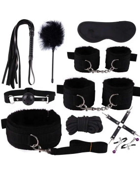 Otwórz drzwi do nowych doznań i odkryj ukryte pragnienia z tym kompletnym 10-elementowym zestawem BDSM w eleganckiej czerni.