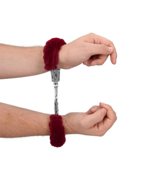 Furry Metal Hand Cuffs - Red