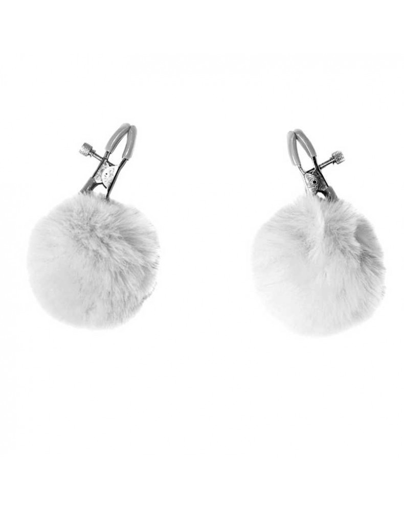 Zaciski na sutki Party Hard Angelic White mają niesamowity design, przemyślany w najmniejszym szczególe. Wysokiej jakości metalowe klipsy w komplecie z zalotnymi białymi zawieszkami z króliczego ogona. Zawieszki są doskonale wyprofilowane, a ochraniacze na powierzchniach styku z ciałem są dopasowane do dekoru futra. Zabawki są bardzo wygodne i praktyczne - dobrze trzymają sutki, a poza tym możesz dowolnie regulować intensywność ucisku. W tym celu dostępne są małe śruby, które obracając, można łatwo wyregulować zaciski, aby uzyskać wrażenie pożądanej ostrości. Rozmiar jest uniwersalny.