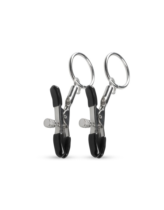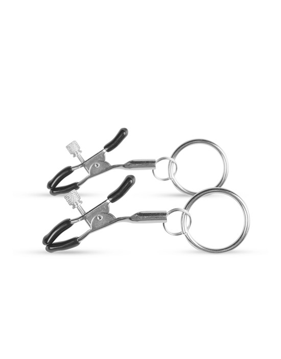 Podejmij wyzwanie i poczuj nowe wrażenie dzięki tym metalowym zaciskom sutków z kolekcji EasyToys. Zaciski zapewniają uczucie ściskania i ciągnięcia sutków. Odkręcając śruby z boku lub obracając je w drugą stronę, możesz zdecydować, jaki nacisk chcesz wywierać na partnera lub własne sutki. Szukasz jeszcze większej sensacji? Przymocuj kilka kółek lub łańcucha do pierścieni!