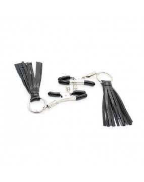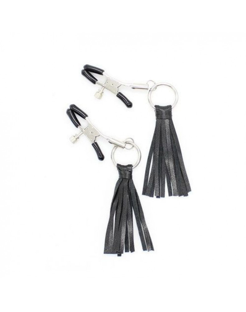 Zaciski na sutki z regulowanym dociskiem połączone metalowym łańcuchem. Do zacisków przymocowane są czarne wstążki. Dla entuzjastów BDSM, ale także dla początkujących, którzy chcą dodać więcej emocji i zabawy do stosunku. To przedmiot Toyz4Lovers: linia Fetish Art Toyz4Lovers nie hamuje!