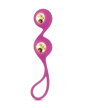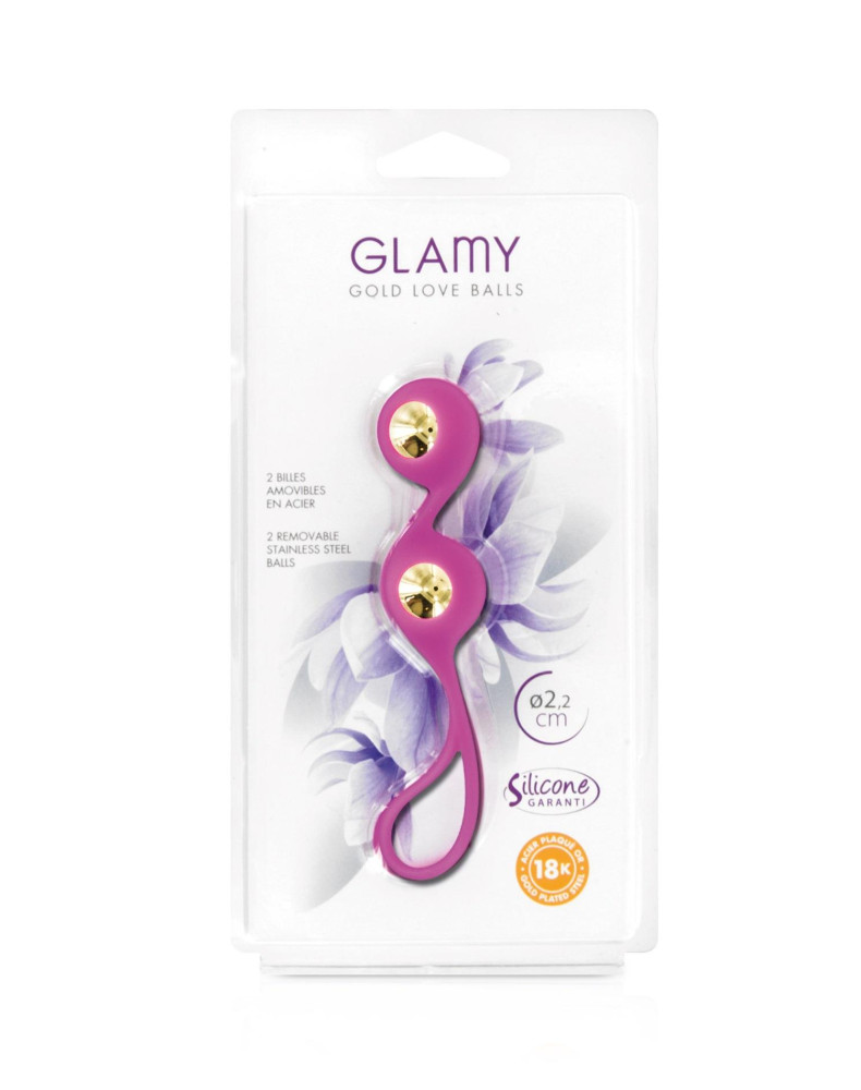 Złote kulki miłości. Dwie wyjmowane pozłacane stalowe kulki dla ekstremalnej przyjemności analnej. Materiał: 100% silikonowa powłoka - 18-karatowe pozłacane kulki stalowe. Bez ftalanów