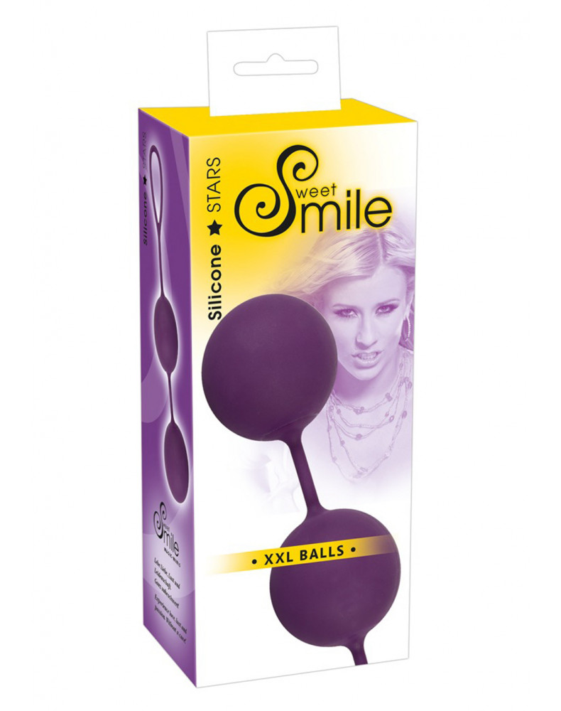 Fioletowe kulki miłości z obracającymi się kulkami wewnętrznymi, paskiem łączącym i pętlą retrakcyjną (9,5 cm). Całkowita długość 21,5 cm. Ø kuli 4,5 cm. Waga 200 g. Materiał: silikon, nie zawiera ftalanów zgodnie z rozporządzeniem UE REACH.,