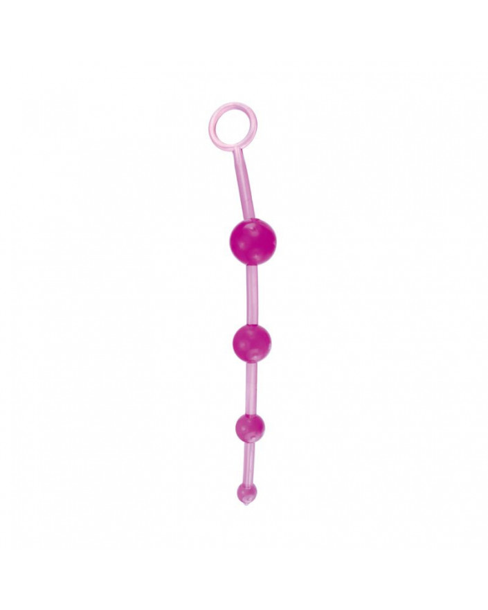 Stopniowany łańcuch 4 kulek z PVC do użytku analnego. Zaczyna się od kulki o średnicy 1,5 cm, aż dotrze do ostatniej kulki o średnicy 3 cm. Z pierścieniowym uchwytem dla większego bezpieczeństwa. Bez ftalanów.
