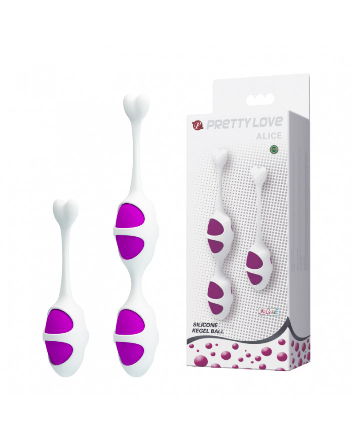 Pretty Love Alice kulki dopochwowe do treningu mięśni kegla. Wymiary: średnica 3,6-3,7 cm.Materiał: 100% silikon medyczny.