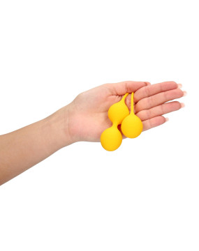 Ten kolorowy, żółty zestaw silikonowych kulek Kegla został zaprojektowany do treningu i poprawy mięśni dna miednicy, poprawiając ogólne samopoczucie i przyjemne doznania. Odkryj niekończące się chwile radości i zaskoczenia z tym zestawem treningowym Loveline.