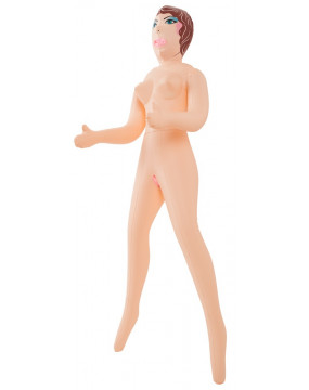 This beautiful woman, with a printed-on face and hair, has 3 inviting and tight pleasure holes. Standing up with bent arms that are open for a hug.