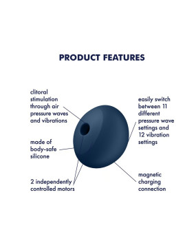 Satisfyer Air Power 4 wyróżnia się ergonomicznym kształtem, który wygodnie leży w dłoni, oraz kompaktowym rozmiarem, który umożliwia dyskretne przechowywanie w torbie podróżnej. Możesz łączyć 11 intensywności fal ciśnienia i 12 programów wibracji, aby dostosować stymulację łechtaczki do swoich potrzeb – z bezpośrednim kontaktem lub bez niego.