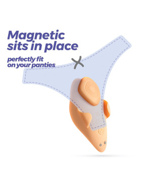 Przytrzymaj przycisk na wibratorze przez 2 sekundy, aby włączyć — zapali się światło. Usuń magnes, dopasuj Atlantis do swojego ciała, a magnes umieść po zewnętrznej stronie bielizny.