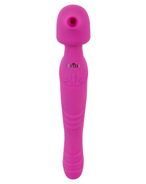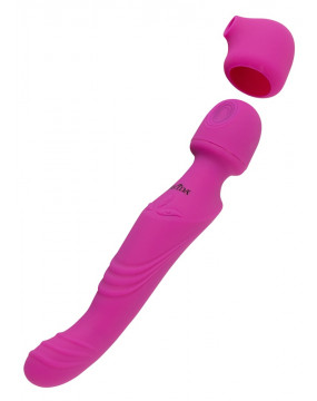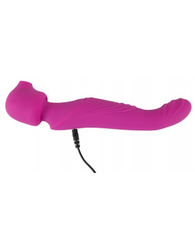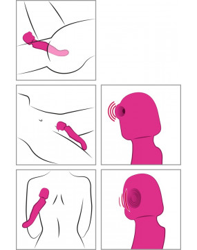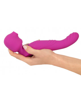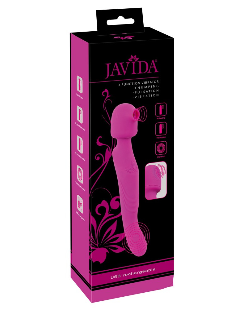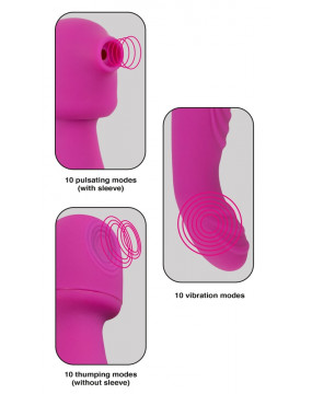 This vibrator can provide spot-on, pleasure spot stimulation and full-body massages and/or massage the intimate areas. Both ends of the vibrator can be used. One side is a massager with a flexible ball-shaped head and attachment (included) for the pulsator/suction function – and without attachment for the knocking function. The other side is a wonderfully curved vibrator with pronounced grooves and a flexible tip. All 3 functions have 10 modes – everything can be controlled separately at the push of a button. The vibrator is covered in a soft touch texture which feels great against the skin during pleasure and play. It can be recharged with the included USB cable.