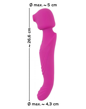 Complete length 26.6 cm. Insertion length of vibrator 14 cm, Ø 2.8 - 4.3 cm. Ball-shaped head Ø 5 cm. Weight 251 g. Silicone, PU.