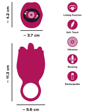 Wewnątrz znajduje się wirujący silikonowy język, który krąży i pobudza punkty erogenne intensywnymi pulsacjami.