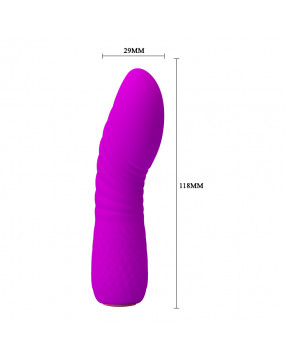 Wykonany z silikonu klasy medycznej, posiada 12 funkcji wibracji. Dzięki modnemu, eleganckiemu wzornictwu, atrakcyjnej kolorystyce i przyjemnemu w dotyku, został zaprojektowany, aby zaspokoić różne potrzeby kobiet. Kontur głowy został zaprojektowany do stymulacji pin-piont, a jej prążkowana tekstura doda dodatkowej stymulacji mięśniom wewnętrznym. Idealne urządzenie do osiągania orgazmów.