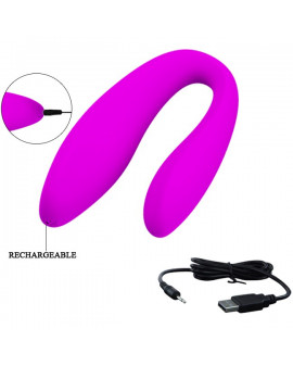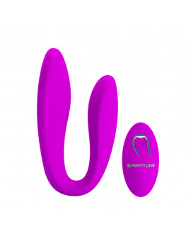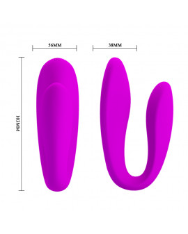 Wyjątkowy wibrator firmy PRETTY LOVE do stosowania razem lub w pojedynkę. Specjalnie wygięty wibrator doskonale sprawdza się do pieszczot całego ciała zarówno mężczyzny jak i kobiety. Posłuży wam więc do pobudzania penisa partnera słodkimi wibracjami, pieszczenia delikatnych sutków, waginy oraz do wspólnego używania podczas seksu. Bezprzewodowy pilot dołączony do zestawu doda jeszcze więcej możliwości zabawy. Wystarczy, że wręczysz go swojemu kochankowi a wasze pieszczoty nabiorą nowego wymiaru. Wibrator wyposażony został w 10 opcji wibracji dla różnorodności waszych doznań.
