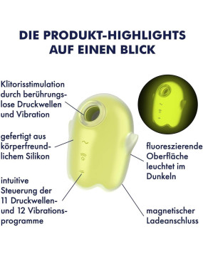 Ta mała zabawka erotyczna zapewnia niesamowite kulminacje: Satisfyer Glowing Ghost to najnowszy dodatek do gamy wibratorów z falą ciśnienia Satisfyer, który sprawi, że poczujesz gęsią skórkę przyjemności dzięki technologii Satisfyer Air Pulse i intensywnym wibracjom.