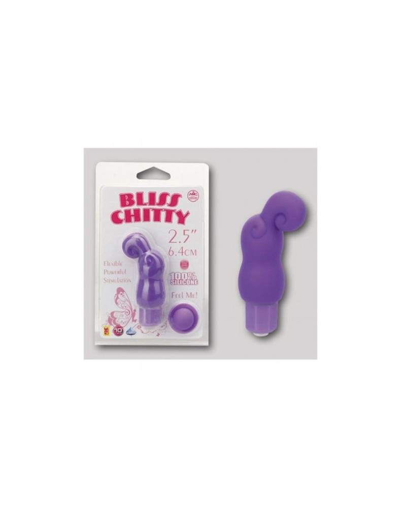 Niewielki silikonowy wibrator w kolorze lila o specjalnym kształcie. W tym niewielkim urządzeniu drzemie moc, która na pewno nie pozwoli Ci zasnąć. Długość to około 6.4cm