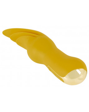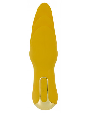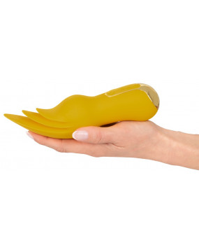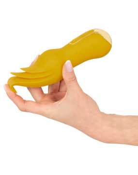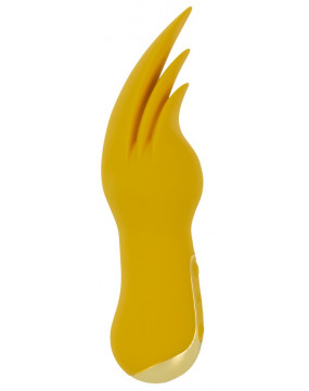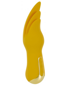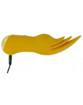 Dynamic, yellow vibrator with 3 flexible, fluttering tips for thrilling stimulation in and on the body. Its 10 vibration modes mean that it can be used during solo fun, foreplay and love-making. The person using the vibrator can also move up and down the modes very easily as well. The fancy vibrator is covered in soft silicone which feels great against the skin during pleasure and play. It can be recharged with the included USB cable.