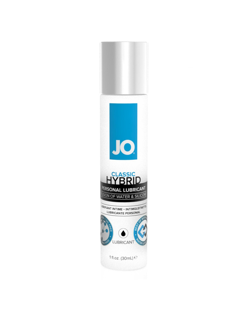 -Wykonany tylko z najwyższej jakości składników farmaceutycznych, JO Hybrid zapewnia jedwabiście gładki, długotrwały poślizg, który nigdy nie staje się lepki ani klejący.