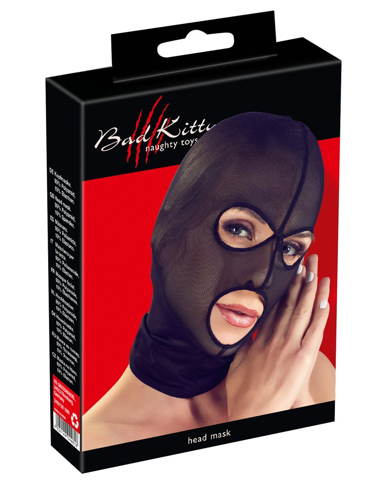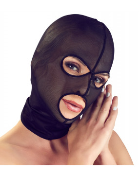 Very stretchy head mask made out of finely woven, semi transparent powernet. The mask is comfortable and fits like a second skin. The large holes for the eyes and mouth are decorated with piping. One size – fits HIM and HER.
