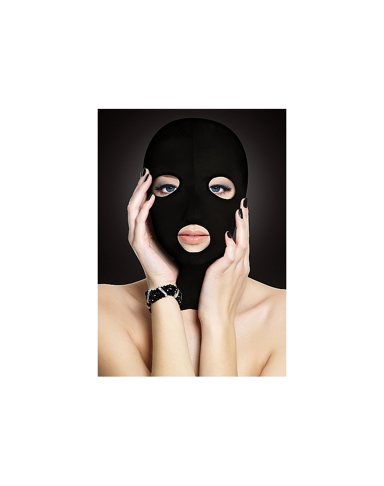 Maska z otworami na usta i oczy przeznaczona jest do naciągania na całą głowe. Tkanina pozwala na przenikanie niewielkiej ilości światła, osłabiając wzrok i pobudzając inne zmysły. Błyszczący czarny kaptur może być noszony zarówno przez Nią, jak i przez Niego. Cienka, lekka tkanina umożliwia oddychanie i słyszenie odgłosów klapsów. Najlepsze jest to, że Twój obiekt może wszystko widzieć, a Ty masz dostęp do jego ust!