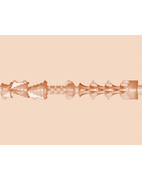 Wnętrze zostało zaprojektowane z wypustkami, żebrowaniami i komorami o zróżnicowanej teksturze, które masują penisa przy każdym ruchu.