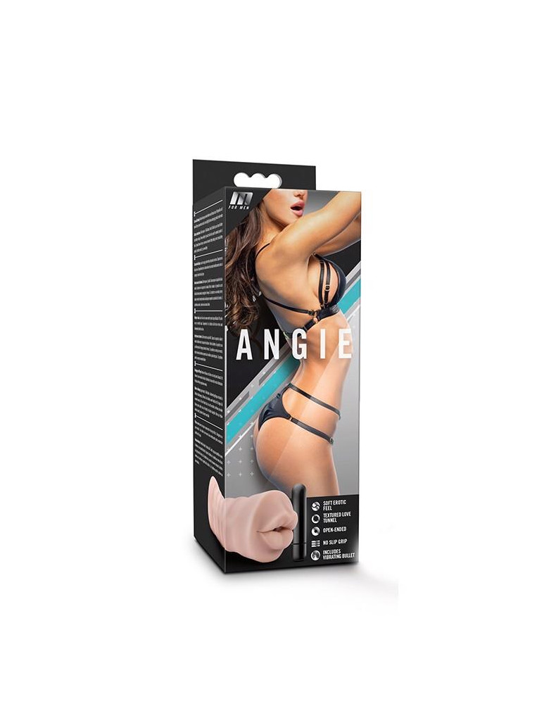 Angie's mouth is open wide, ready to take you. Made of lifelike X5, Angie offers the perfect balance of soft and firm. Plus, the one-speed vibrating bullet delivers even more sensation up and down your shaft. Sized for convenient one-hand stroking, Angie is open-ended to fit all lengths. You control the speed and depth of your thrusts. Enjoy Angie alone or with your partner.Soft plus ribbed to enhance your stroking sensationOne-speed waterproof bullet vibrator heightens stimulationOpen end ensures Angie is easy to clean and care forMade of body safe TPE, contains no fragrances, phthalates, paraffins, or latexLength 5.1 inch / 12,9 cmWidth 1.7 inch / 4,3 cm