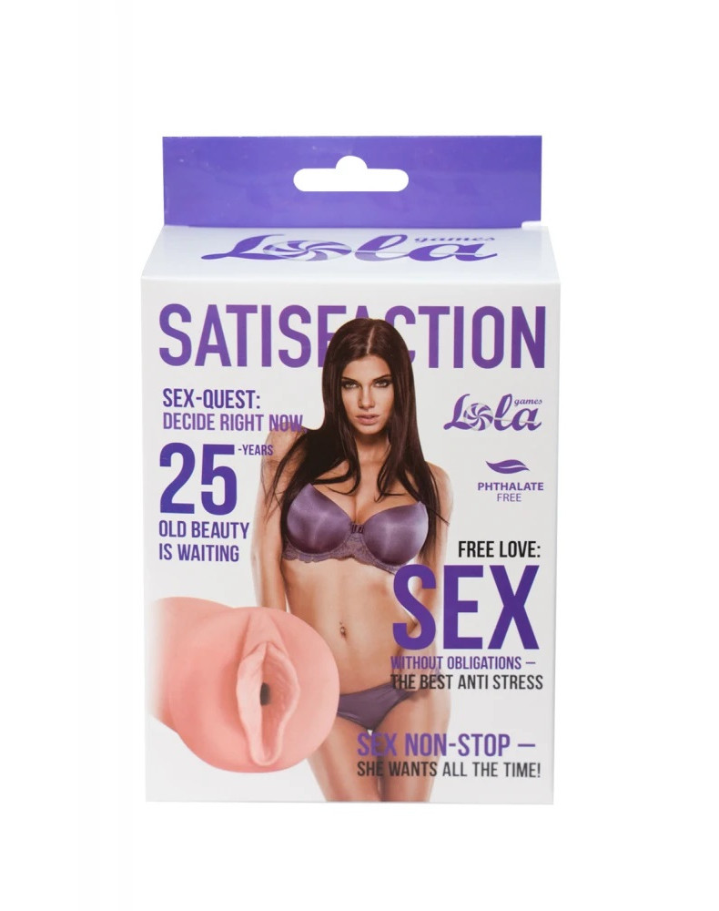 Oryginalny projekt pudełka, w formie okładki magazynu „Satysfakcja”. Urocza 25-letnia dziewczyna z numeru powie Ci, czym jest smak seksu. Masturbator w kolorze cielistym to kobieca pochwa. Ten intymny dodatek został stworzony z miękkiego i elastycznego materiału. W środku masturbator posiada ulgę mającą na celu maksymalne podniecenie penisa. Charakterystyka: długość – 12 cm, szerokość – 5 cm, wysokość – 5,6 cm, średnica otworu – 0,5 cm, materiał – TPE.