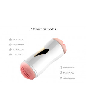 Duży podwójny masturbator (z jednej strony Usta, z drugiej Wagina). Potężna jednostka wibracyjna pozwala na regulowany masaż wzdłuż całej długości penisa. 7 funkcji intensywnych wibracji, pulsacji i eskalacji.