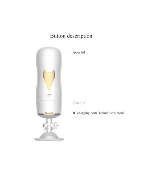 1 Dłużej naciśnij przycisk "o", aby włączyć masturbator. Zawibruje 1 sekundę i przejdzie w stan gotowości. Kolejne krótkie naciśnięcie włączy pierwszy tryb wibracji. Każde krótkie naciśnięcie zmienia funkcję masażera, przechodząc przez jego 7 trybów wibracji.