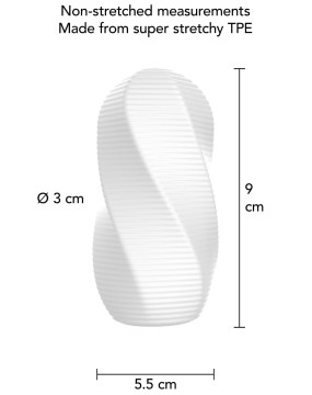 Wnętrze wyprofilowane w wirującą strukturę spiralną zapewnia wyjątkowe tarcie i masujące doznania przy każdym ruchu. Sam decydujesz o tempie i nacisku, by dopasować stymulację do swoich potrzeb.