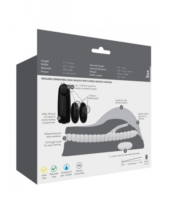 "Realistyczny wibrujący masturbator" Miss Mia "to produkt najwyższej jakości. Zabawka ma dwie miłosne dziury - realistycznie rozciągliwy otwór w pochwie i rozciągliwy otwór anal, z wewnętrznymi, teksturowanymi tunelami.