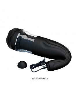 Włóż swojego penisa do bardzo mocnej szczeliny masturbatora i pozwól mu wykonać resztę pracy. Wewnętrzna komora obraca dziesiątki miękkich bryłek TPR podczas głaskania w górę iw dół twojego członka. Oferuje 4 prędkości obrotowe i 4 funkcje ruchu w górę i w dół dla intensywnego przeciążenia doznaniem. Wypróbuj to dzieło, a nie pożałujesz, że masz je wśród swoich zabawek erotycznych.