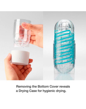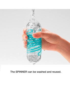 Przezroczysty, wielokrotnego użytku masturbator spinner marki Tenga z wbudowaną cewką, która sprawia, że masturbator obraca się podczas penetracji (mechanizm wewnętrznej cewki). Kanał przyjemności o wyraźnej strukturze bodźców.