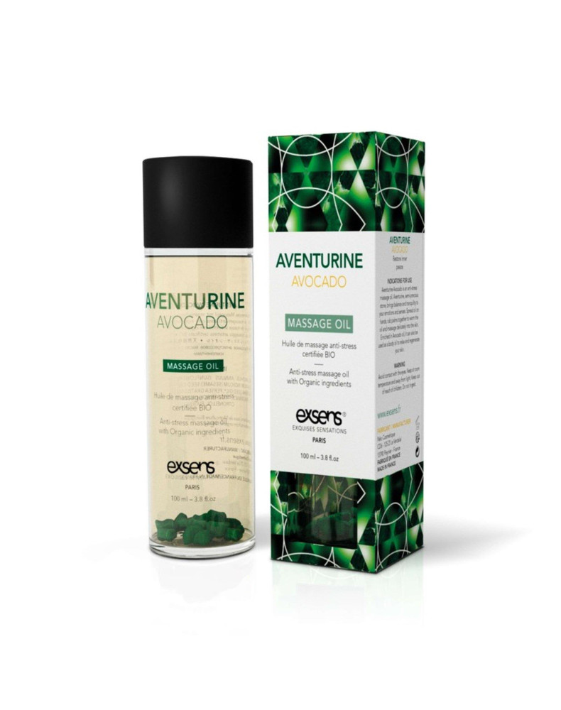 Aventurine Avocado to antystresowy olejek do masażu. Awenturyn, kamień półszlachetny, przynosi równowagę i spokój emocjom i zmysłom. Rozprowadź olejek na dłoniach, potrzyj dłonie, aby rozgrzać olejek i delikatnie wmasuj go w skórę. Wzbogacony olejem z awokado, może być również stosowany jako olejek do ciała, aby zrelaksować i zregenerować skórę.