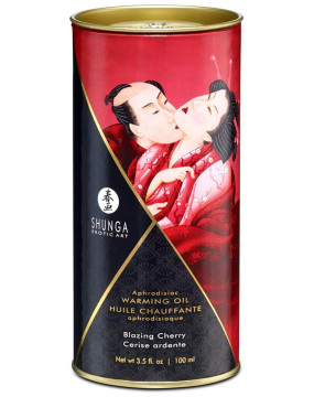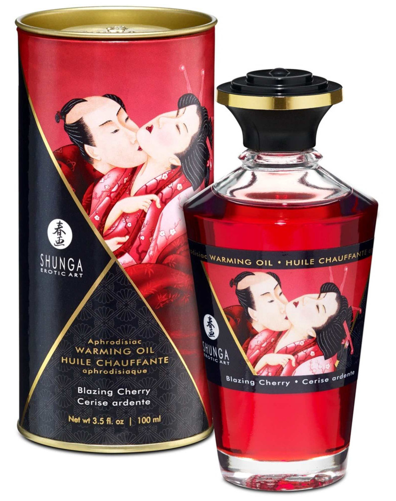 Luksusowy Afrodyzjakowy olejek rozgrzewający Blazing Cherry od Shunga o pysznym wiśniowym aromacie, który rozbudza wszystkie zmysły podczas intymnego masażu! Posiada również efekt mrowienia ciepła, który subtelnie potęguje się podczas oddychania na nim. Naturalne składniki pielęgnują skórę, a wykwintny spożywczy aromat zaprasza do pocałunku. Uczta dla ciała i duszy - i idealny prezent w eleganckim szklanym flkonie w pięknym cylindrze do pakowania.