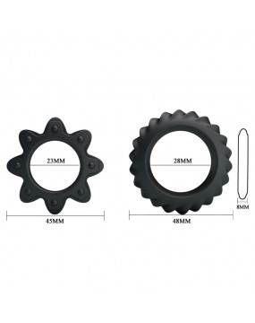 Spójrz na część i daj jej to, czego chce, dzięki temu fantastycznemu zestawowi czarnych pierścieni na penisa. Dwa różne wzory w każdym opakowaniu i bardzo rozciągliwe. Noś pojedynczo lub wszystkie razem, aby uzyskać maksymalną wydajność. Wykonany z silikonu, który jest bezpieczny dla skóry, ponieważ nie zawiera lateksu ani ftalanów. Wysokiej jakości pierścienie na penisa zapewniające mocne i długotrwałe erekcje - ten zestaw przetrwa lata.