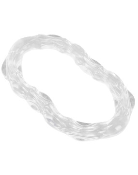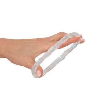 Większy, przezroczysty pierścień silikonowy jest tak rozciągliwy, że można go łatwo założyć w kształcie ósemki, co pozwala na różnorodne sposoby noszenia.