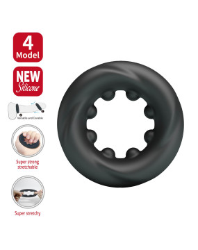 W komplecie znajdują się trzy rozmiary: extra small, small i medium – idealne do różnego rodzaju zastosowań: wokół trzonu, jąder lub do noszenia warstwowego. Każdy pierścień oferuje inny stopień dopasowania i ucisku, dzięki czemu możesz dostosować intensywność doznań według własnych preferencji.
