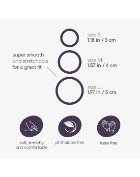 W zestawie znajdziesz 3 elastyczne silikonowe pierścienie o różnych rozmiarach oraz 1 regulowany pierścień.
