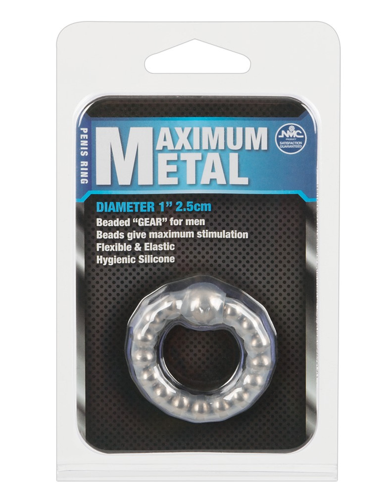Cock ring with massaging, stimulating metal beads inside a transparent, silicone-like sleeve. Tight-fitting – the ring grips your penis tightly for long-lasting sexual pleasure. Ø 2.5 cm (flexible).