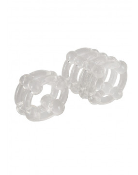 2 przezroczyste silikonowe pierścienie do przedłużonej erekcji. 1 podwójny pierścień, jeden poczwórny pierścień. Nadaje się również do jąder. Ø każdy 2,5 cm, elastyczny 2 sztuki w komplecie.