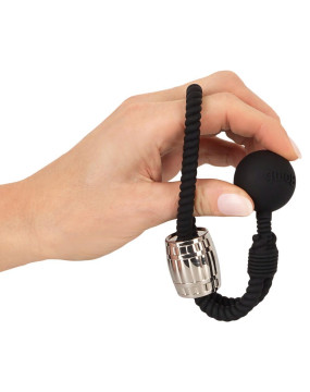 Odkryj nowe doznania z wyjątkowym, ciężkim paskiem z kulką marki Rebel! Ten stylowy, czarny pasek o designie liny jest wyposażony w elegancką, przesuwaną metalową kulę oraz dodatkowy ciężarek, które łącznie ważą 166 g. Regulowany, elastyczny silikonowy pętla pozwala na idealne dopasowanie do penisa, zapewniając efekt pobudzającego ucisku, który wzmaga erekcję. Można także założyć pętlę wokół jąder, by poczuć przyjemne napięcie. W wersji, w której pasek otacza jednocześnie penisa i jądra, wrażenia są szczególnie intensywne. Wisząca kula kołysze się przy każdym ruchu, dodając ekscytujących doznań. Z takim wyposażeniem nie ma mowy o nudzie – przed Tobą długa, dzika przejażdżka!